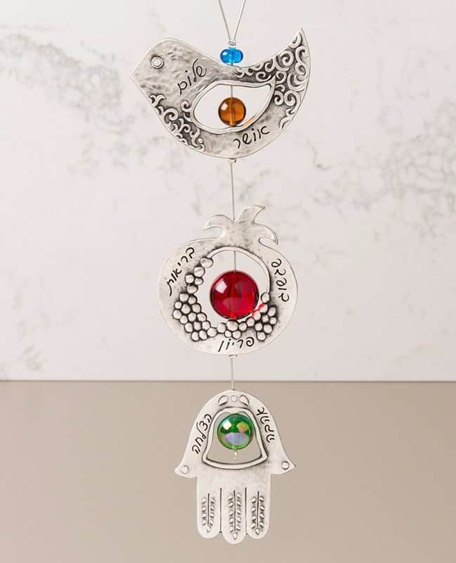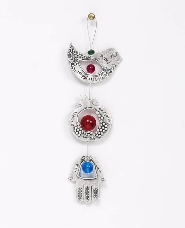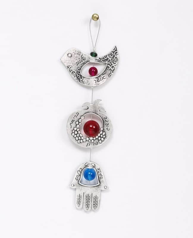 המתלה מורכב משלושה מוטיבים מעולם סמלי הברכות: ציפור, רימון וחמסה, המחוברים ביניהם על ידי חוט דק מצופה כסף שבקצהו לולאת תלייה, ומעוטרים בחרוזים צבעוניים.