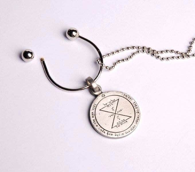 תליון כסף 925 עגול עם קוד מיסטי המכיל צירופי סימנים,אותיות, שמות מלאכים, צפנים ופסוקים תנ"כיים.
