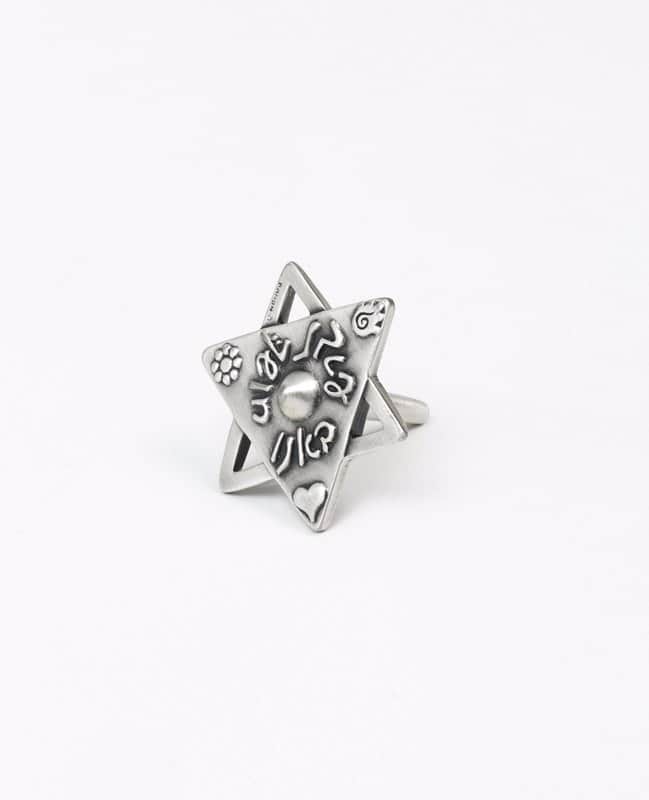 סביבון מצופה כסף טהור בצורת מגן דוד שבמרכזו עיטור פרח ועליו מסומנות האותיות "נ-ג-ה-פ".
