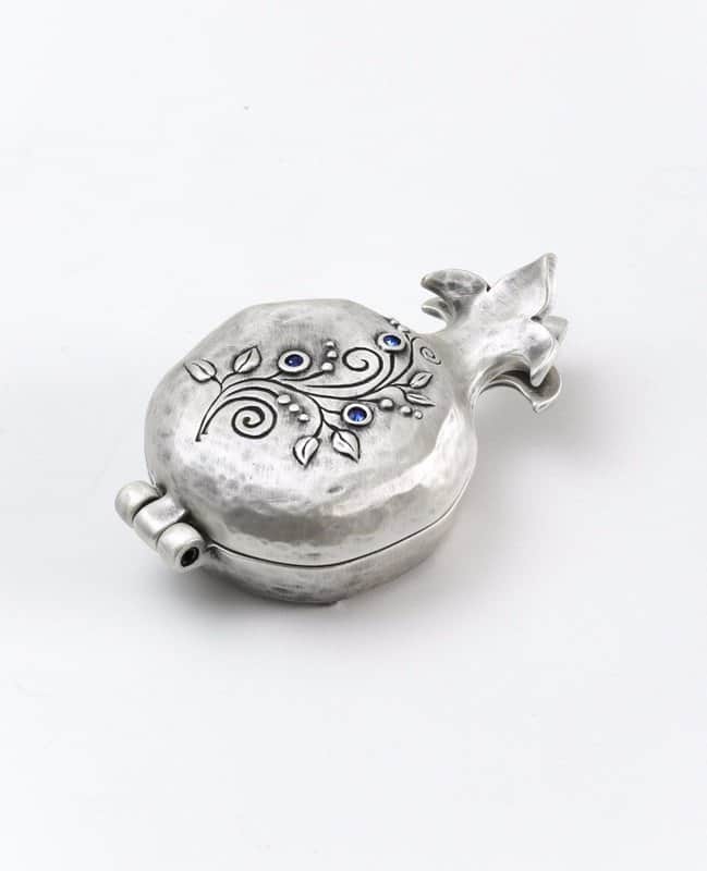 זוג פמוטים מתקפלים לצורת רימון מעוטר ומשובץ באבנים אדומות.