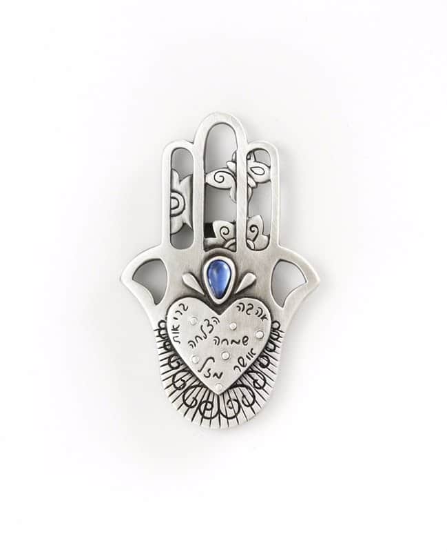 מגנט בצורת חמסה משובץ באבן כחולה בצורת טיפה המברך את כל באי הבית או המשרד בברכות אהבה, שמחה, הצלחה, בריאות, אושר ומזל.