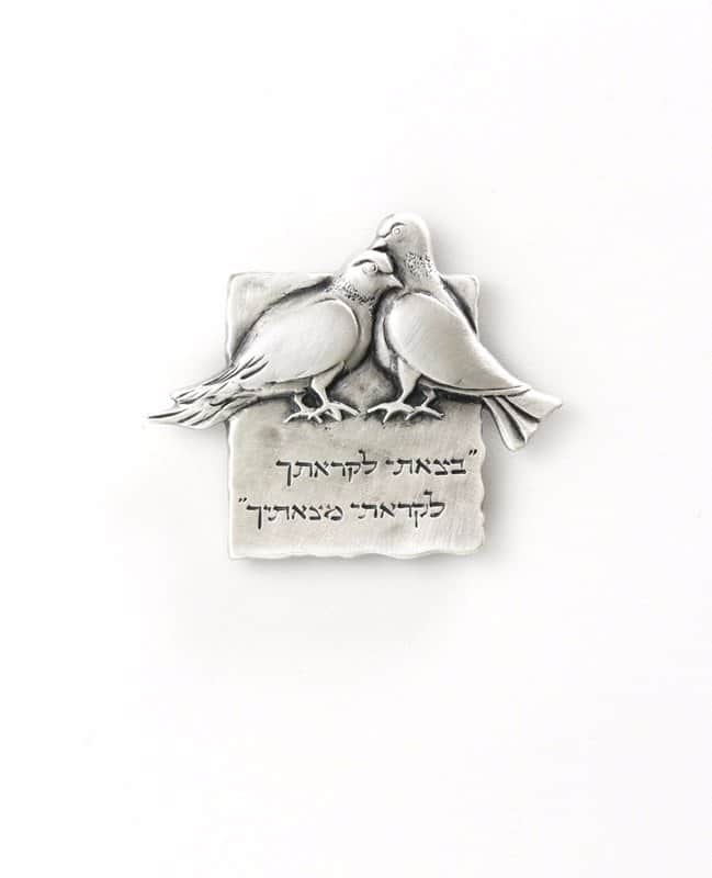 מגנט מלבני מצופה כסף טהור עם זוג יונים חבוקות, מתחתן מופיע הכיתוב "בצאתי לקראתך לקראתי מצאתיך". המראה על קרבה, הדדיות ופשרה בין אנשים. מתנה פשוטה ומשמעותית למישהו קרוב.