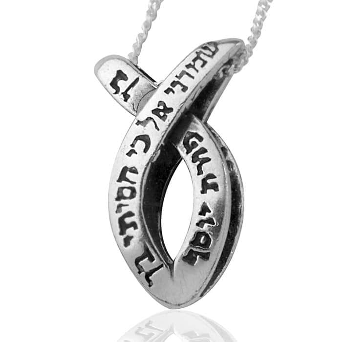 על גבי תליון דג מוטבע הפסוק "שמרני אל כי חסיתי בך" הלקוח מתוך מזמור ט"ז של תהילים המיוחס למלך דוד. זאת משום שבמזמור מתאר דוד את ההדדיות בקשר שבין האדם הדבק בה' ובין ה' המשגיח ושומר עליו.