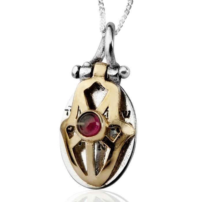 תליון חמסה "רות" משובץ גרנט (לבחירה) , כסף וזהב