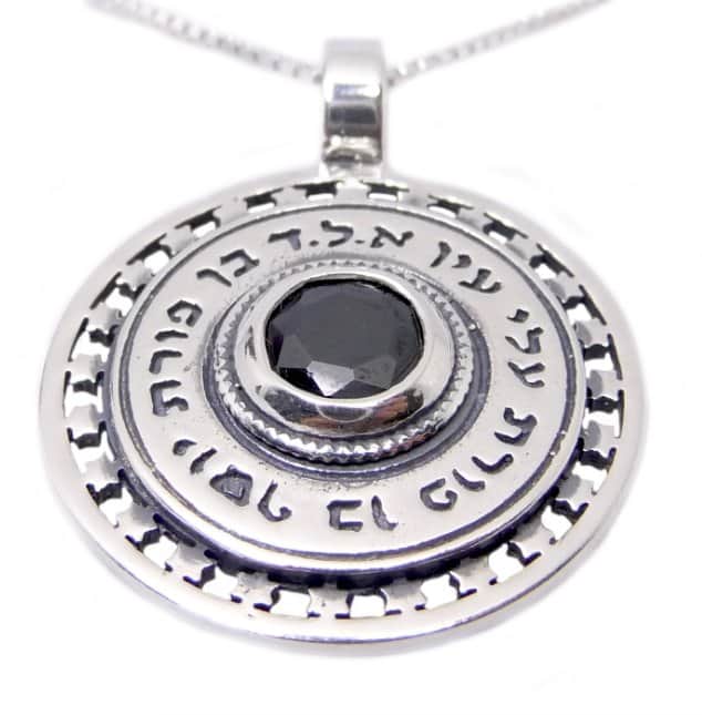 תליון "עטרת דוד" , ברכה (לבחירה) , משובץ אבן (לבחירה) , מעוטר מגיני דוד , כסף