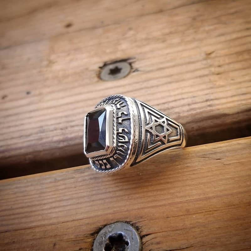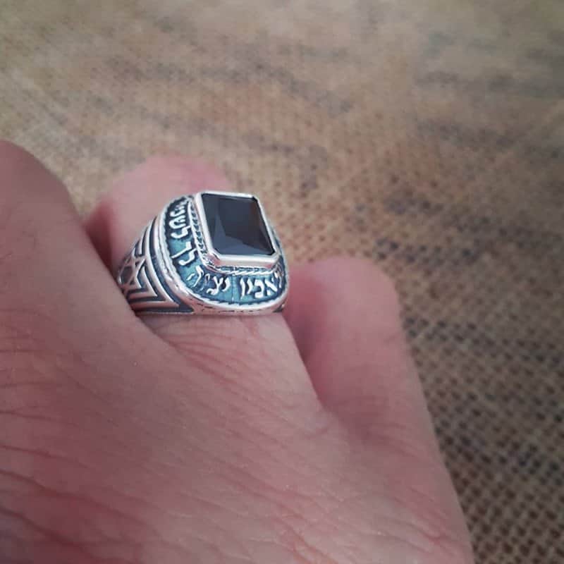 טבעת "כי מלאכיו" משובצת אבן אוניקס (לבחירה) , בעיטור מגן דוד