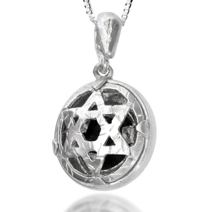 תליון מגן דוד עגול עשוי כסף בשילוב 5 המתכות- נחושת, בדיל ועופרת.