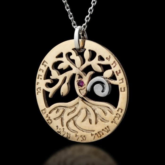 תליון "עץ מעגל החיים" זהב , 5 מתכות משובץ רובי (אודם) לבחירה