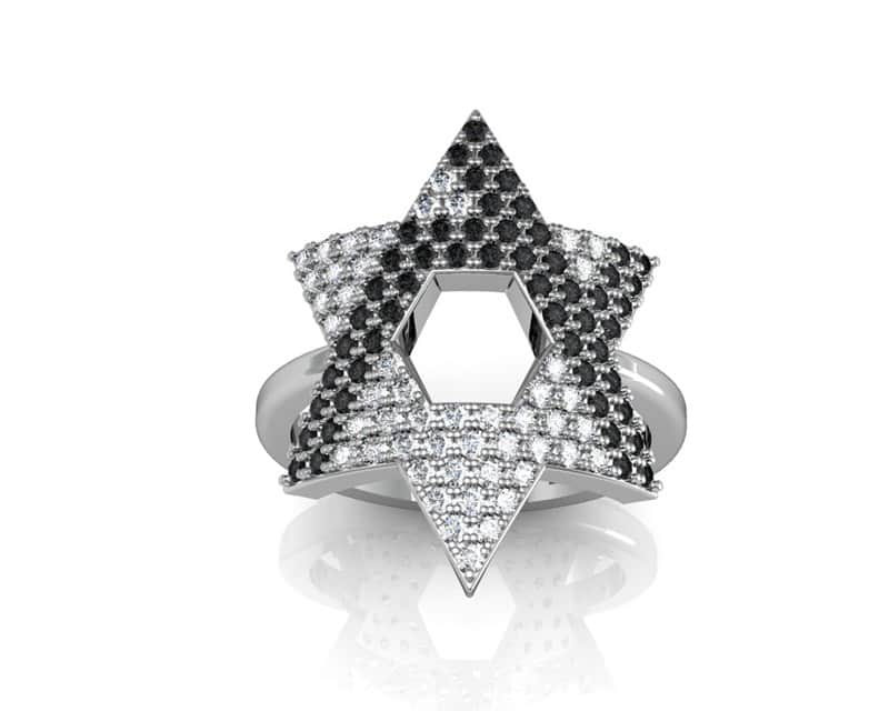 טבעת מגן דוד משובצת זירקונים לפי אות (בחירה) , כסףטבעת מגן דוד א'