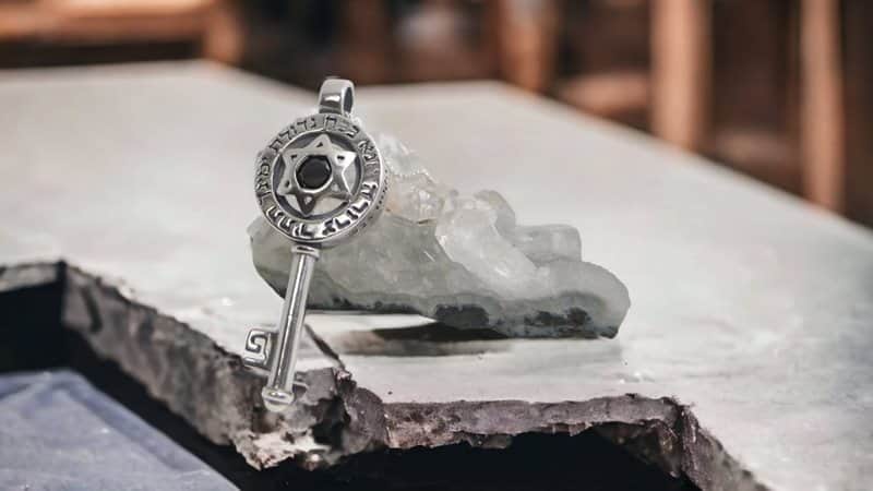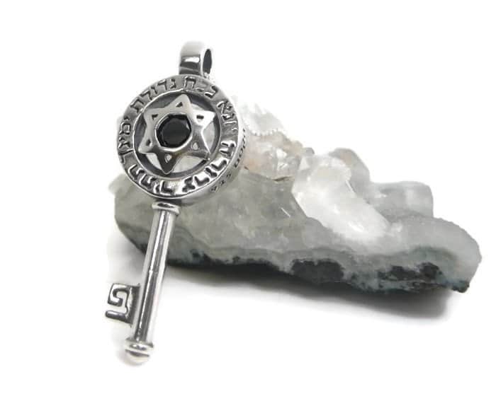 תליון מפתח "אנא בכח" , מגן דוד משובץ אבן אוניקס (לבחירה) , ברכה (לבחירה) , כסף