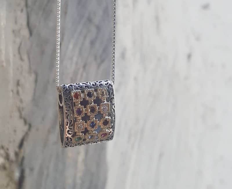 תליון "אפוד החושן" , 12 אבני חושן , "ברכת כהנים" (מאחור) , כסף וזהב
