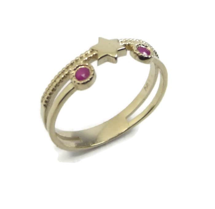 טבעת מגן דוד זהב 14K משובצת אבני רובי (לבחירה)
