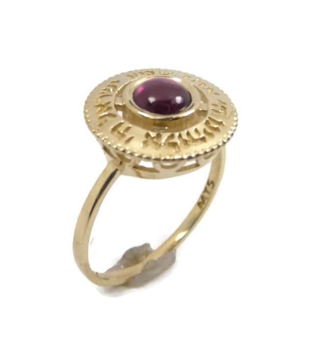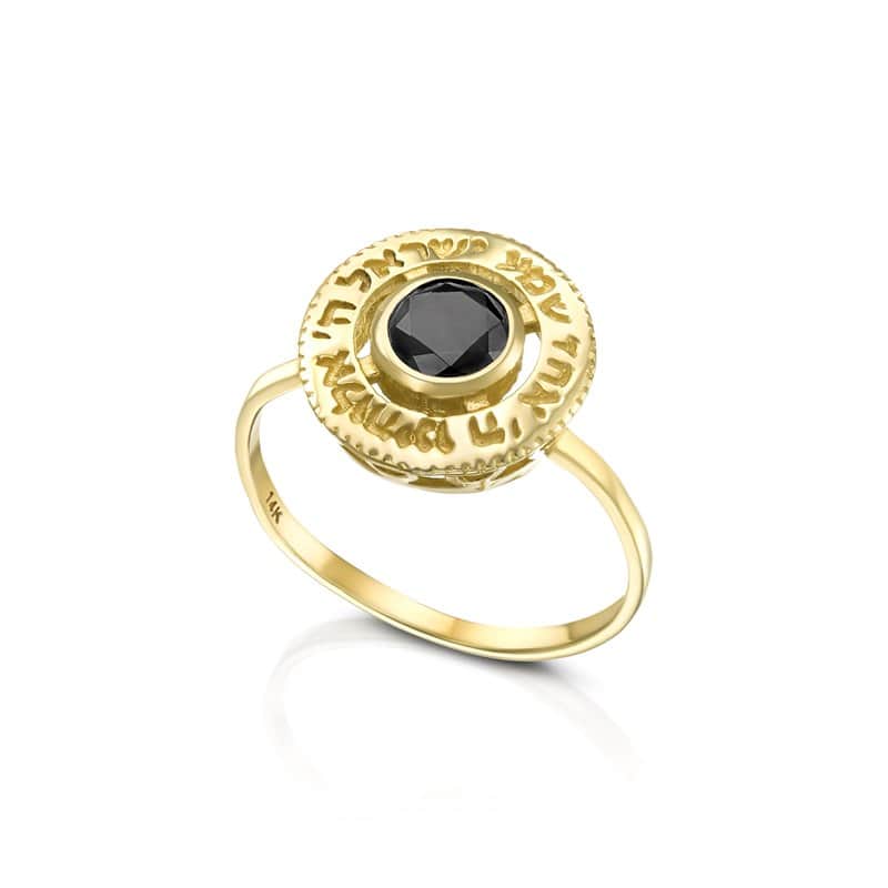 טבעת "שמע ישראל" (לבחירה) זהב 14K משובצת אבן (לבחירה)