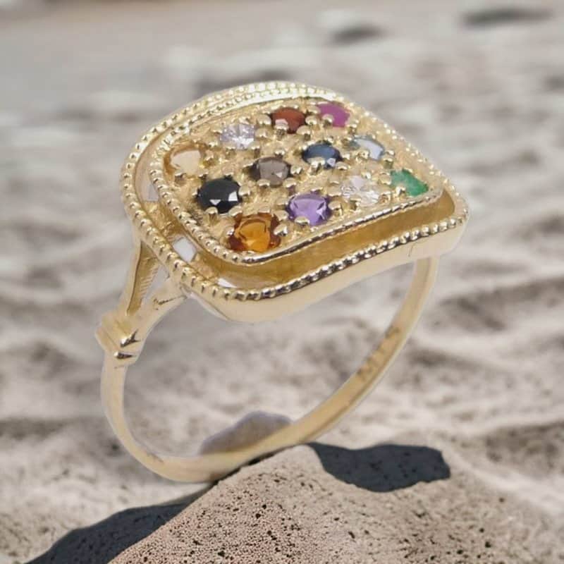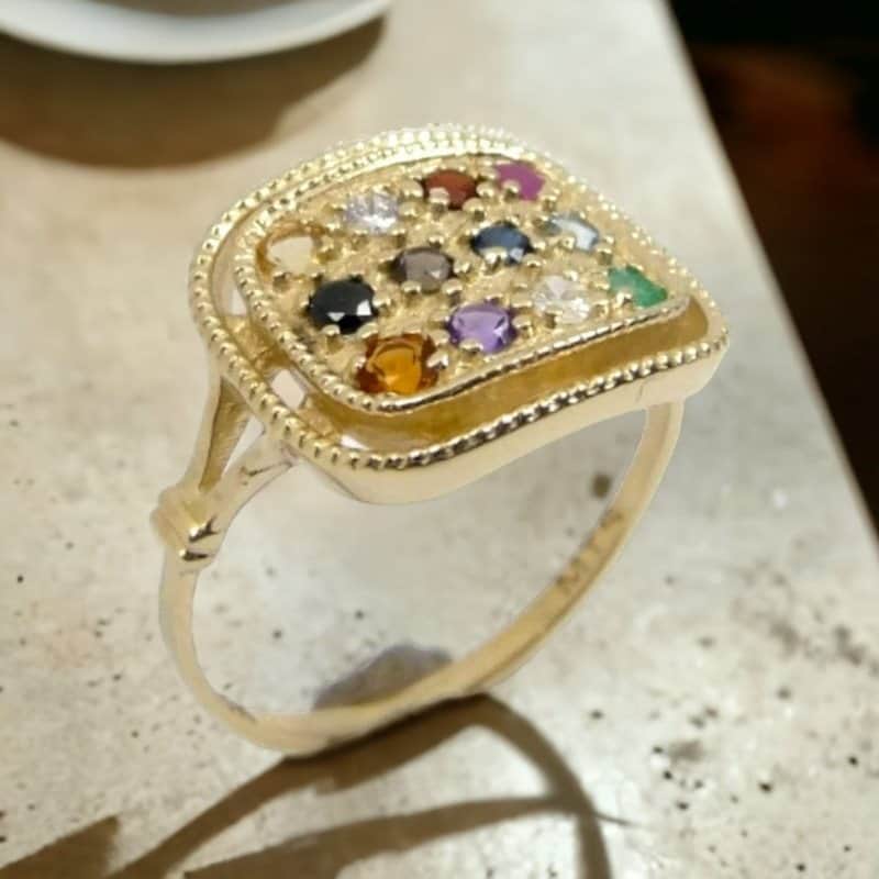 טבעת חושן "אור-יה" זהב עדינה , משובצת 12 אבני החושן