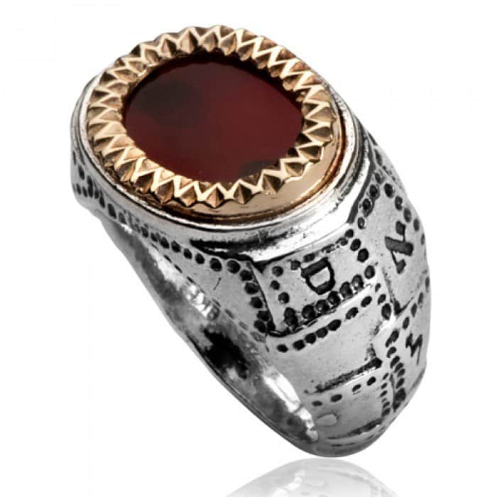 טבעת "פ.א.י" לשפע והצלחה , משובצת גרנט (לבחירה) , כסף וזהב