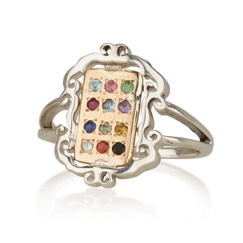 טבעת חושן "קדם" , כסף וזהב , משובצת 12 אבני החושן