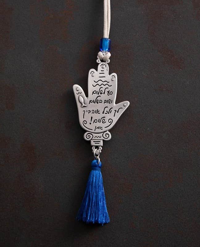 מתלה לרכב בצורת חמסה, מצופה כסף טהור ומשובצץ אבן בצורת עין, שמהווה גם קמע לשמירה וסגולה כנגד עין הרע.