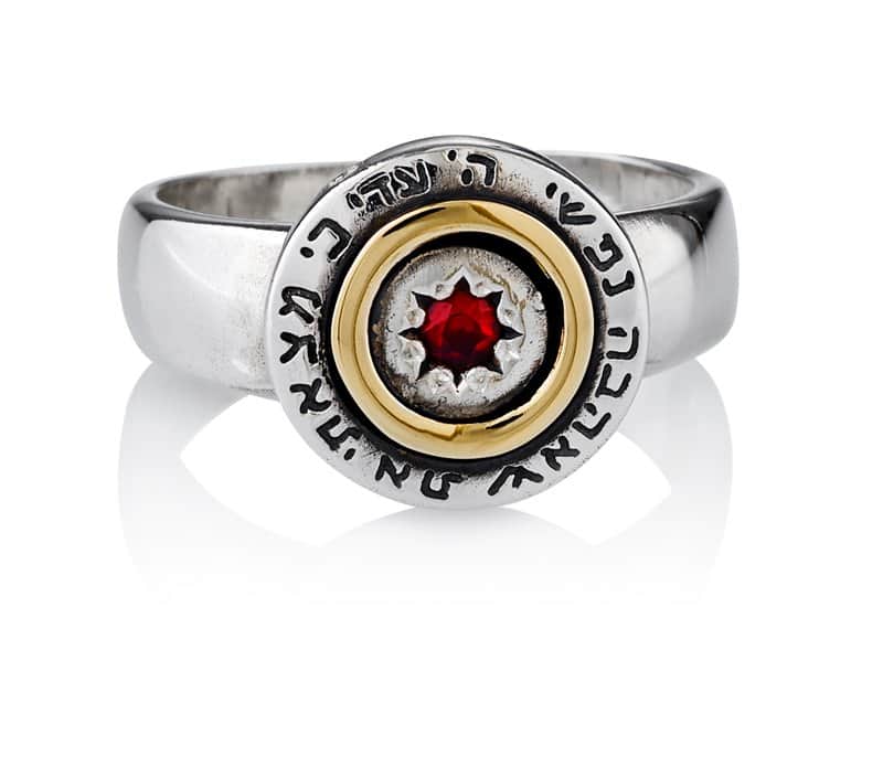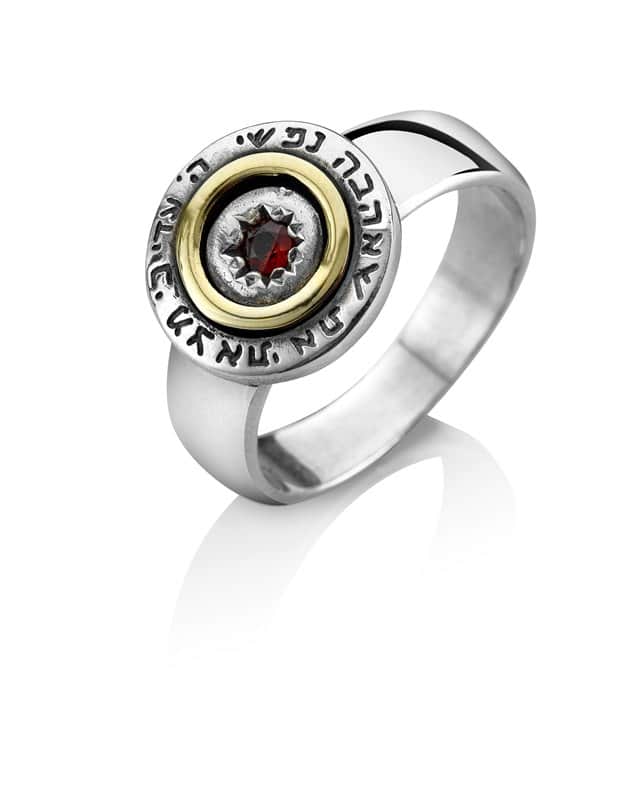 טבעת "אסתר" משובצת גרנט (לבחירה), 5 מתכות, כסף וזהב