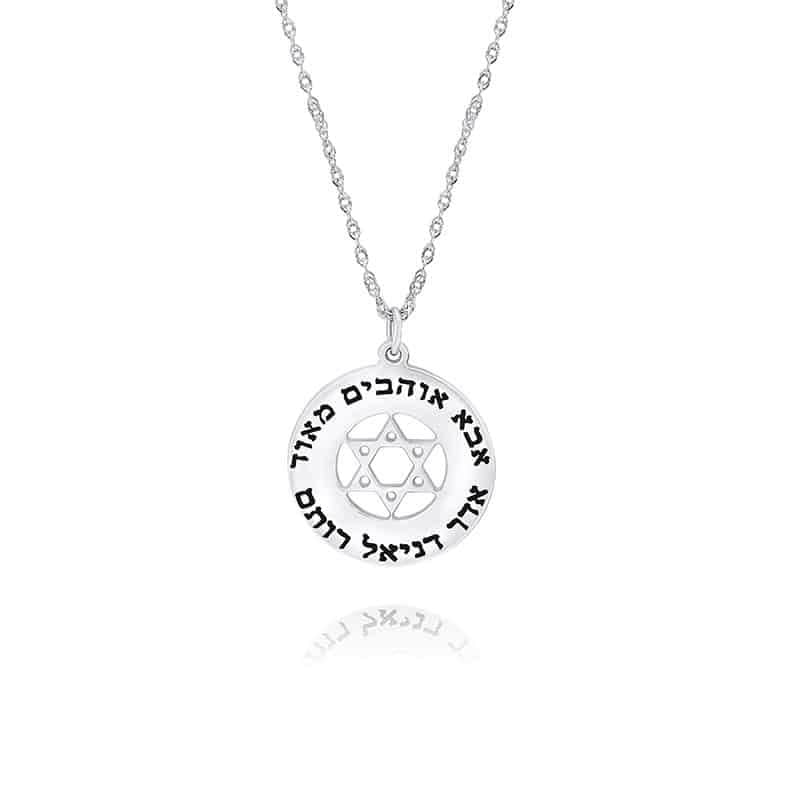 שרשרת מגן דוד מכסף 925 לאבא עם שמות הילדים והקדשה בחלק העליון