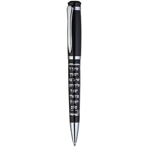 עט שחור מהודר עם כיתוב כסף "ברכת כהנים" עברית, 13.5 ס"מ