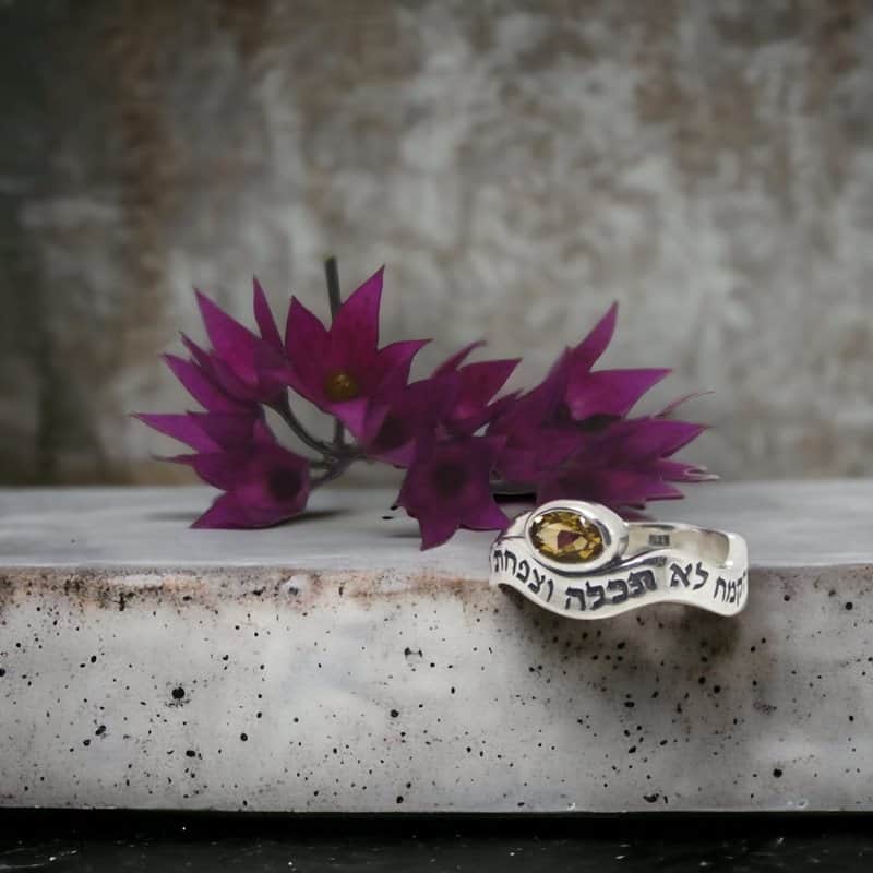 טבעת "כד הקמח לא תכלה וצפחת השמן לא תחסר" , כסף משובצת סיטרין (לבחירה)