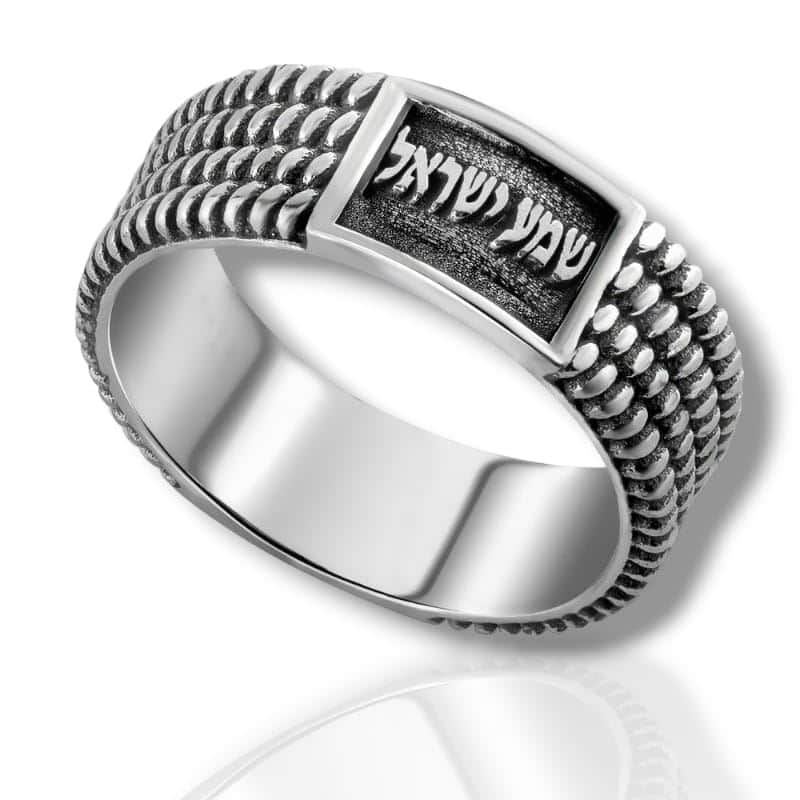 טבעת "שמע ישראל" בעיצוב חבלים דקים , כסף
